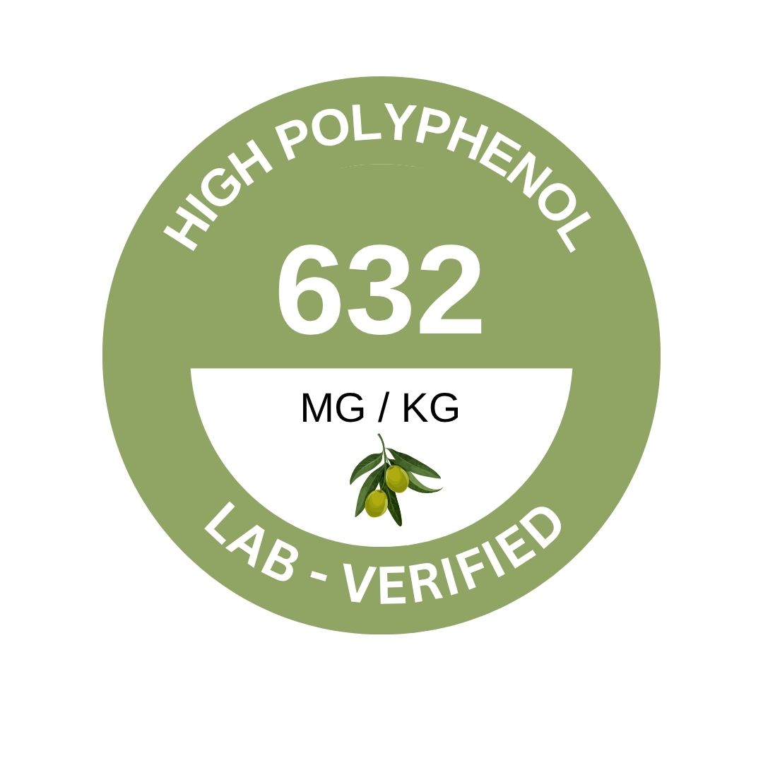HIGH IN POLYPHENOLS (health claim): 632 mg/kg with 12.63 mg/20g of hydroxytyrosol. Well over the thresholds of 250mg/kg and 5mg/20g respectively for a health claim.